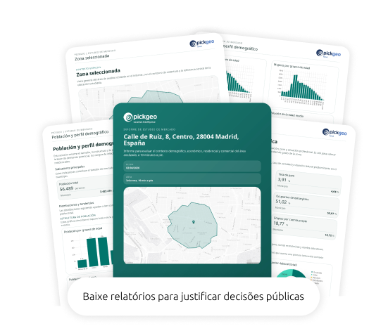 Por apenas 12 €, analisa localizações com dados demográficos, económicos e comerciais para tomar decisões com mais segurança em diferentes mercados.
