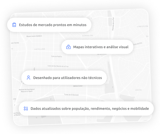 Plataforma avançada para cadeias e empresas que precisam avaliar aberturas, zonas comerciais, concorrência e procura real.